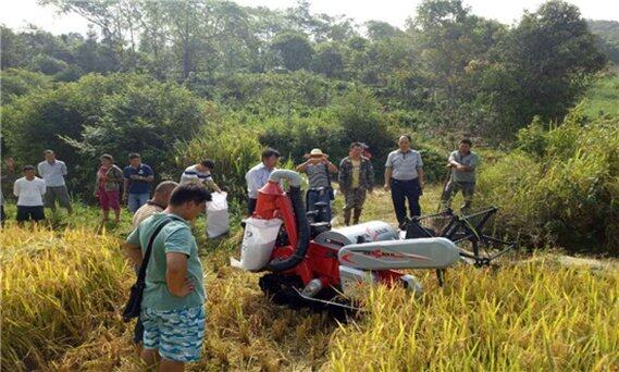 9月26日,勐海县农机推广站、勐海立坤农机公司及勐宋乡农业中心共同在勐宋乡朝阳村举行小型谷物收割机现场演示会。